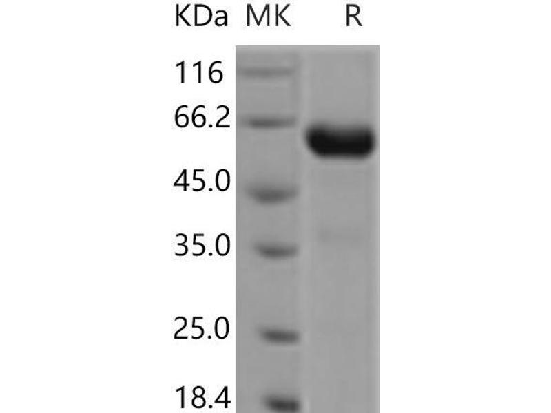 The purity of the protein is greater than 95 % as determined by SDS-PAGE and Coomassie blue staining.