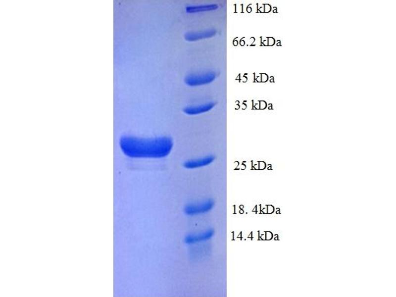 The purity of the protein is greater than 95 % as determined by SDS-PAGE and Coomassie blue staining.
