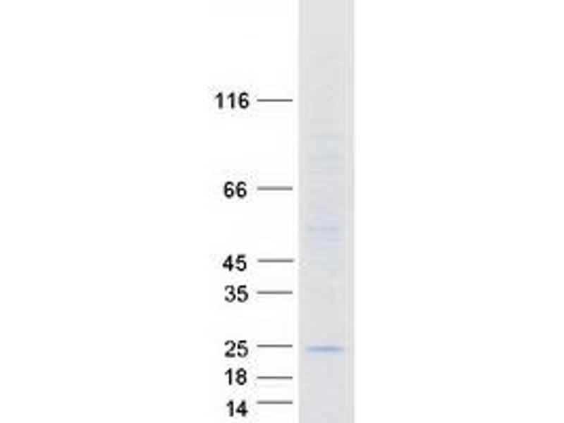 The purity of the protein is greater than 95 % as determined by SDS-PAGE and Coomassie blue staining.