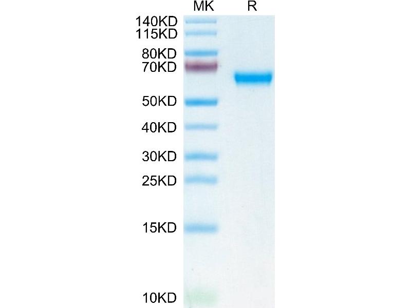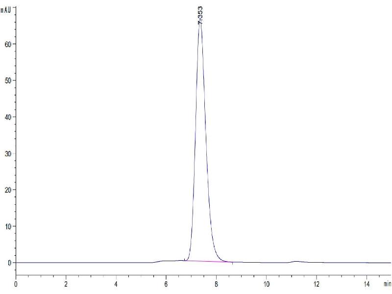 The purity of the protein is greater than 95 % as determined by SDS-PAGE and Coomassie blue staining.