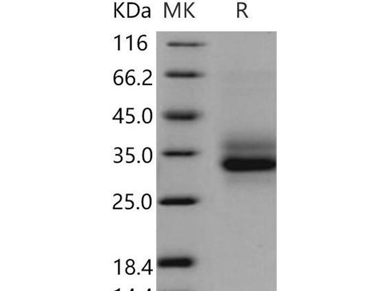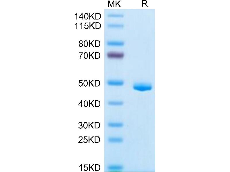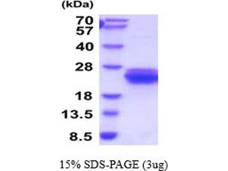 The purity of the protein is greater than 95 % as determined by SDS-PAGE and Coomassie blue staining.