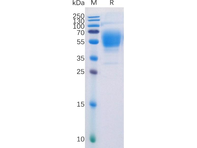 The purity of the protein is greater than 95 % as determined by SDS-PAGE and Coomassie blue staining.