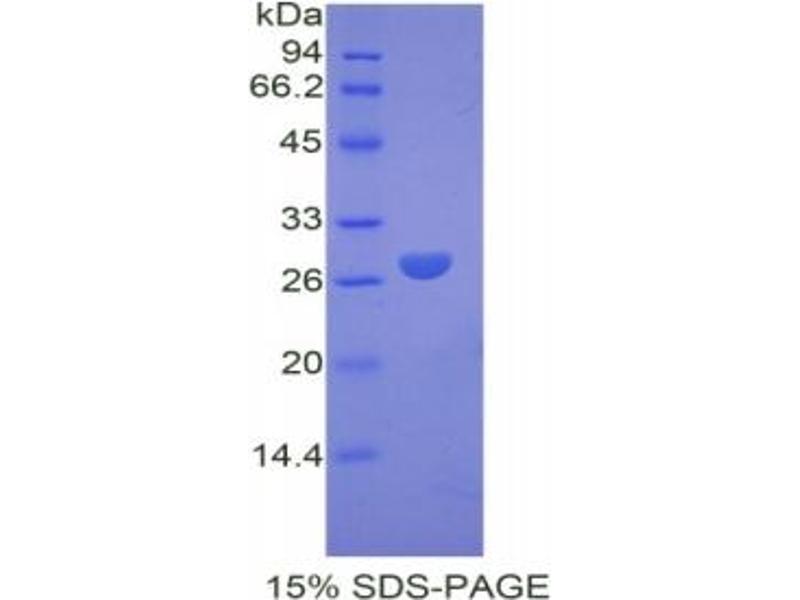 The purity of the protein is greater than 85 % as determined by SDS-PAGE and Coomassie blue staining.