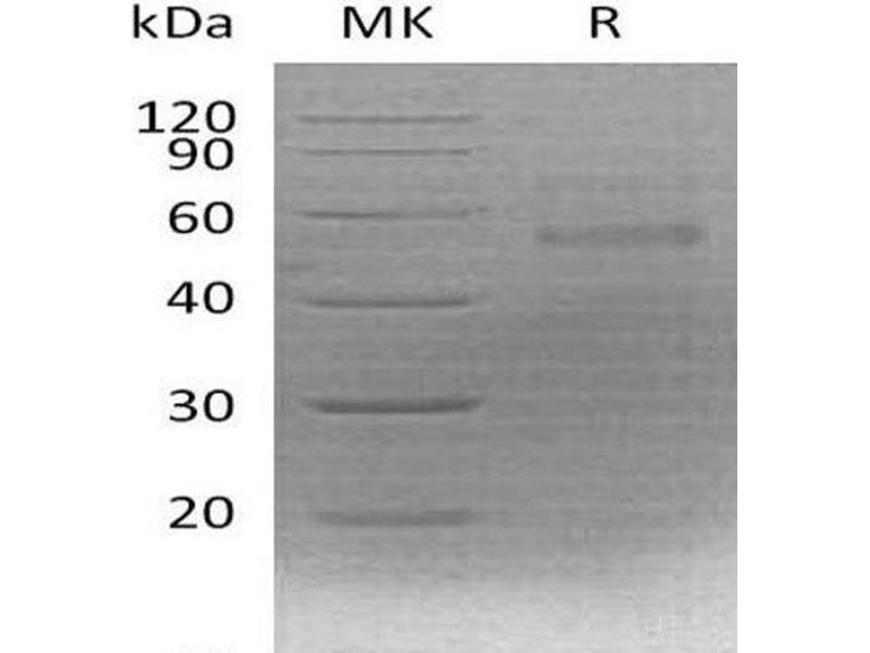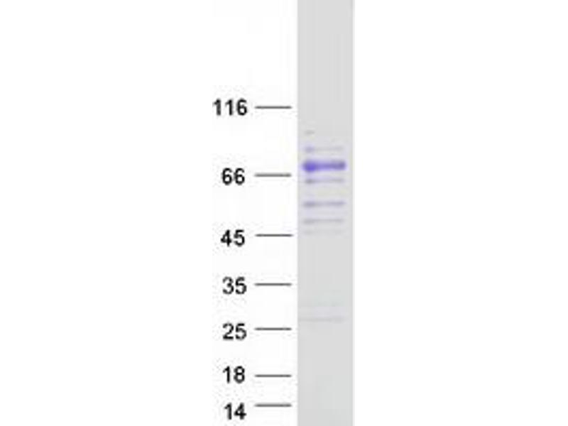 The purity of the protein is greater than 85 % as determined by SDS-PAGE and Coomassie blue staining.
