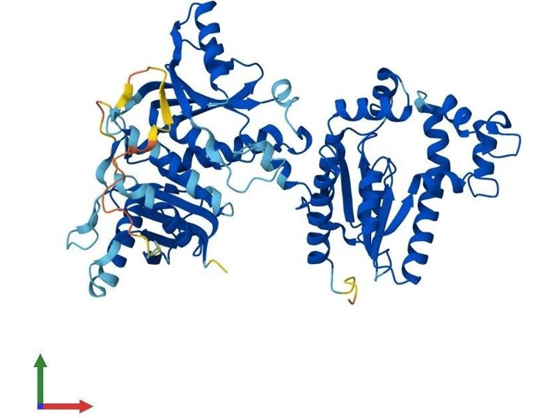 Biosynthesis of coenzyme A (CoA) from pantothenic acid (vitamin B5) is an essential universal pathway in prokaryotes and eukaryotes. COASY is a bifunctional enzyme that catalyzes the 2 last steps in CoA synthesis. These activities are performed by 2 separate enzymes, phosphopantetheine adenylyltransferase (PPAT\; EC 2.7.7.3) and dephospho-CoA kinase (DPCK\; EC 2.7.1.24), in prokaryotes (Daugherty et al., 2002 [PubMed 11923312]).[supplied by OMIM, Mar 2008].