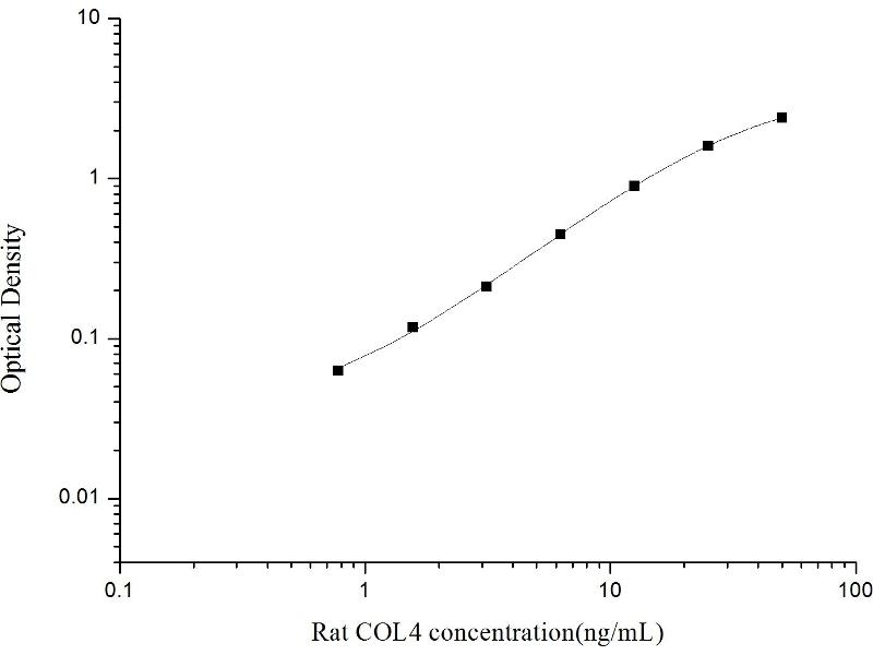 COL4 Reactivité: Rat Colorimetric Sandwich ELISA 0.78 ng/mL - 50 ng/mL Cell Culture Supernatant, Plasma, Serum