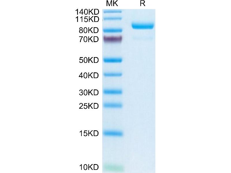 The purity of the protein is greater than 85 % as determined by SDS-PAGE and Coomassie blue staining.