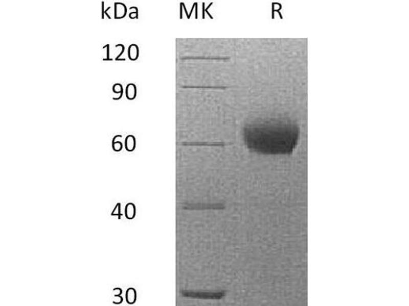 The purity of the protein is greater than 85 % as determined by SDS-PAGE and Coomassie blue staining.