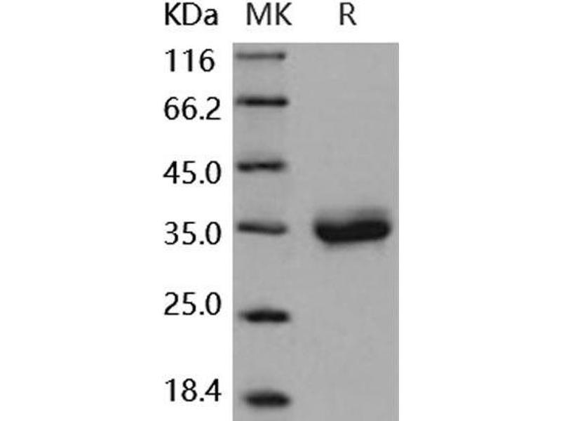 The purity of the protein is greater than 95 % as determined by SDS-PAGE and Coomassie blue staining.
