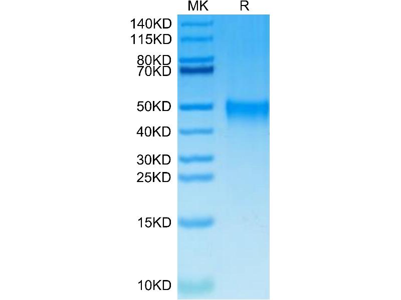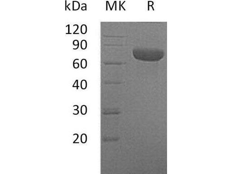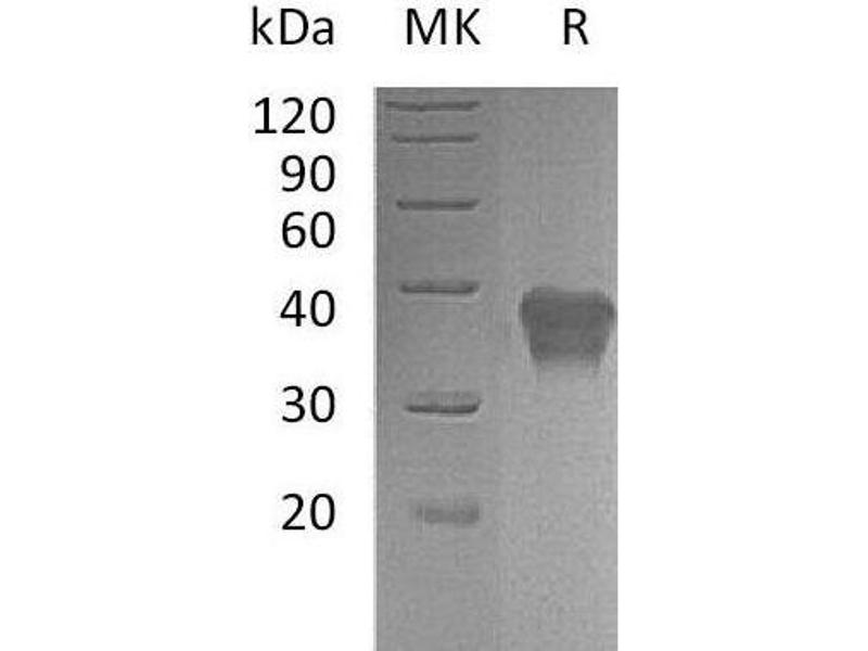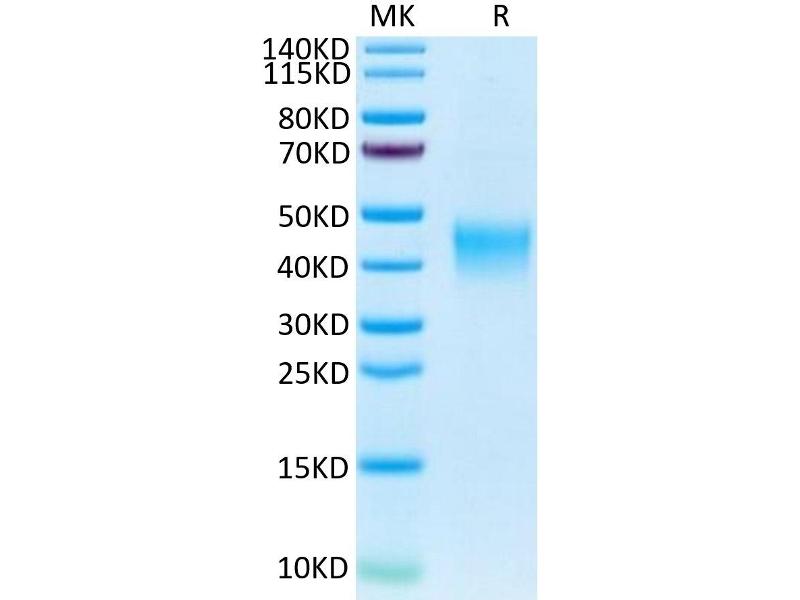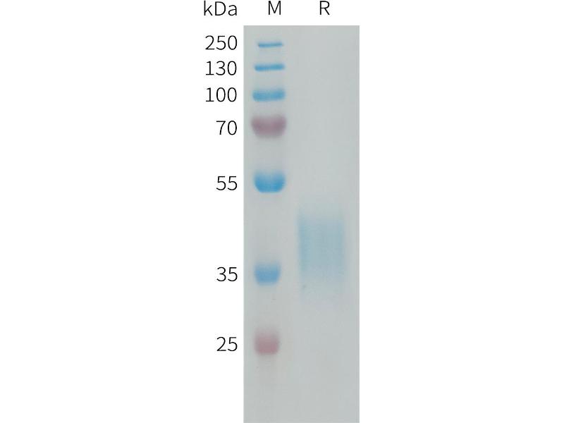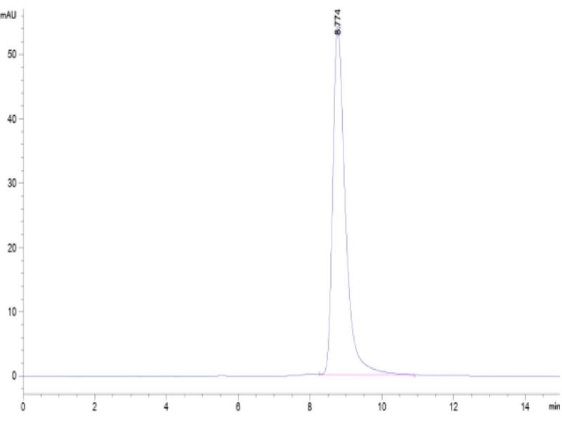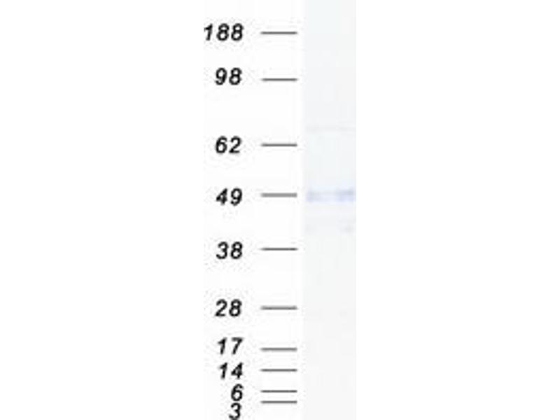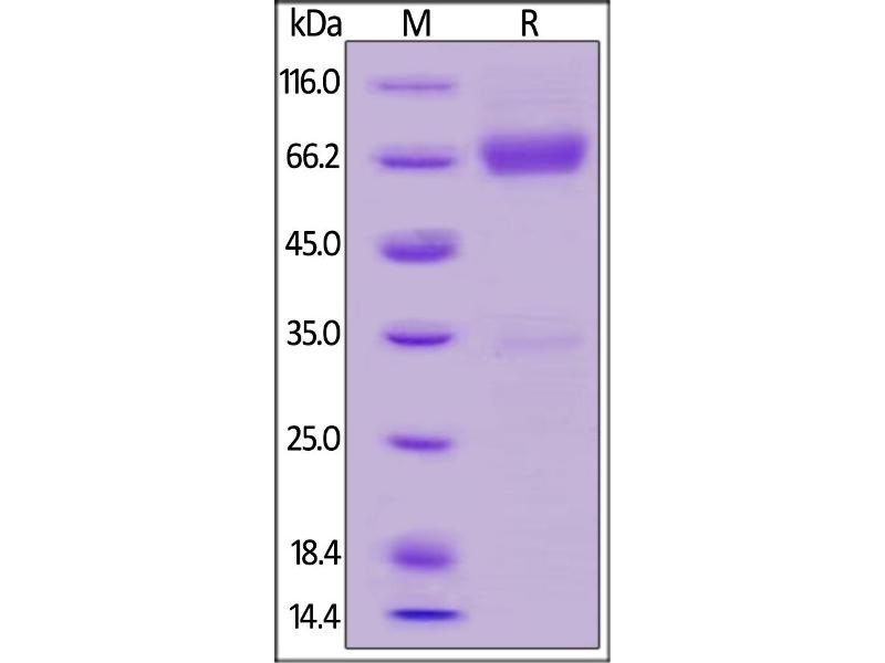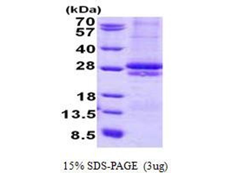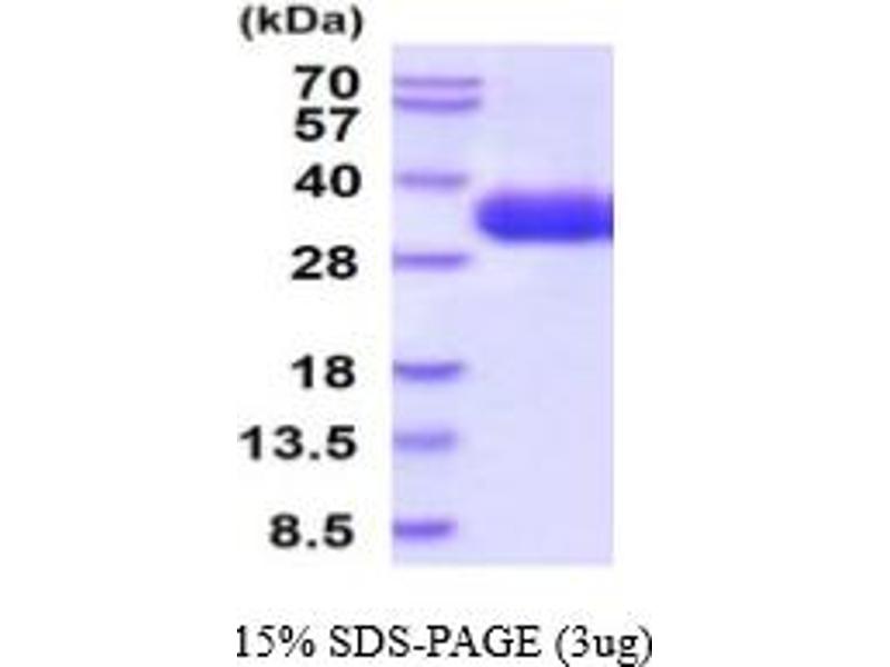 The purity of the protein is greater than 85 % as determined by SDS-PAGE and Coomassie blue staining.