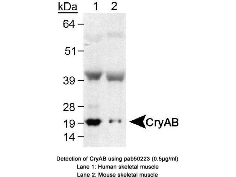 CRYAB Reactivité: Humain, Rat, Souris, Boeuf (Vache), Mouton, Chien, Cobaye, Lapin, Cheval WB Hôte: Lapin Polyclonal unconjugated