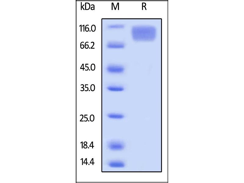 The purity of the protein is greater than 95 % as determined by SDS-PAGE and Coomassie blue staining.