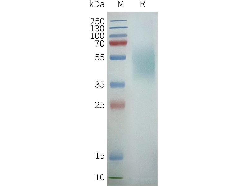 The purity of the protein is greater than 95 % as determined by SDS-PAGE and Coomassie blue staining.