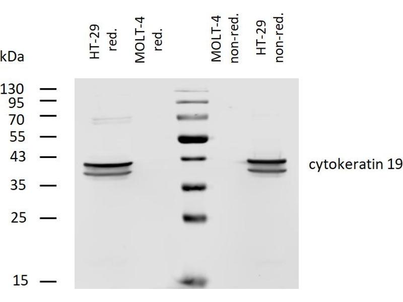 KRT19 Reactivité: Humain WB, FACS, ELISA, IHC (p), ICC, IP Hôte: Souris Monoclonal A53-B-A2 Biotin