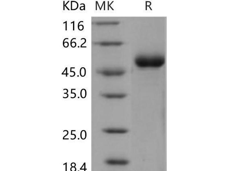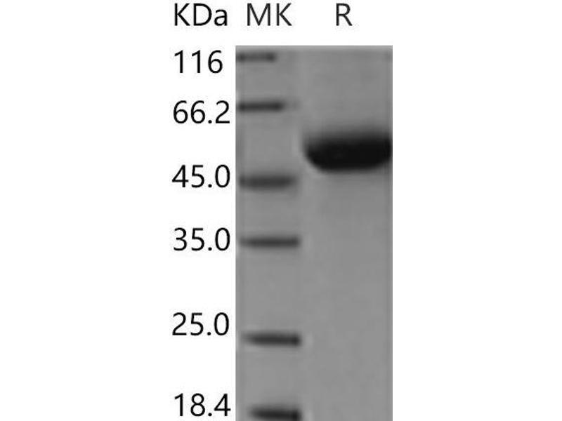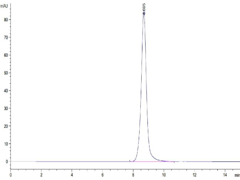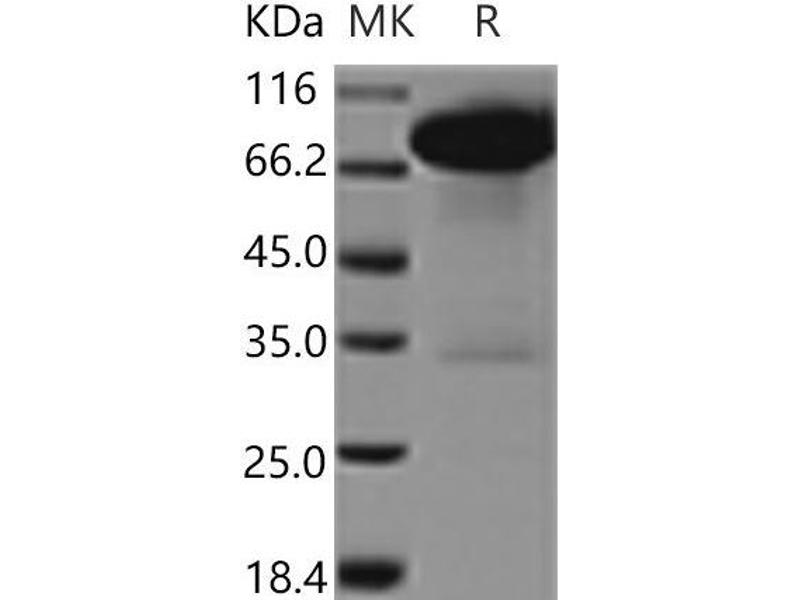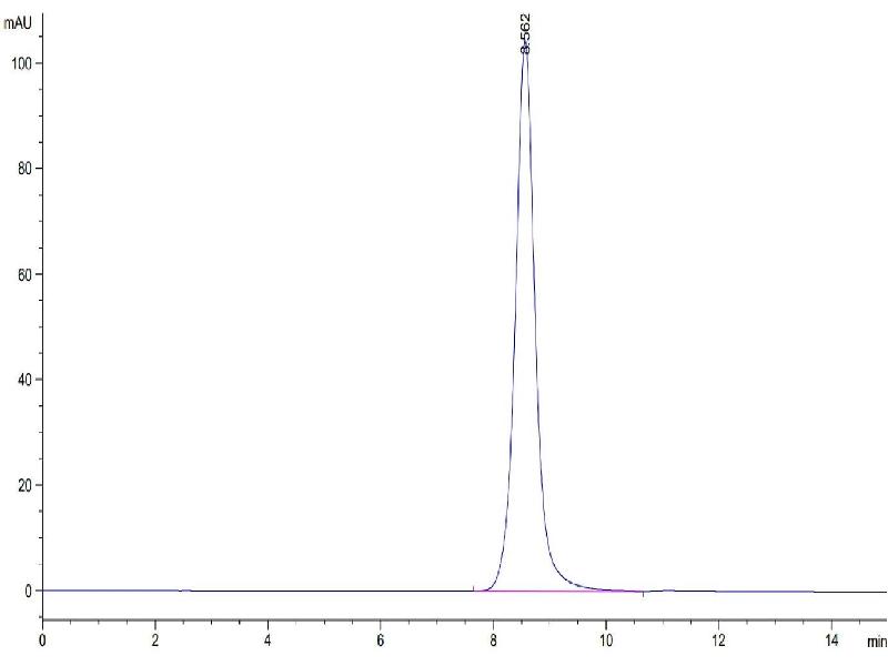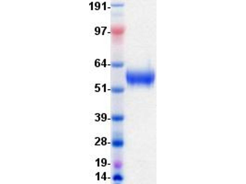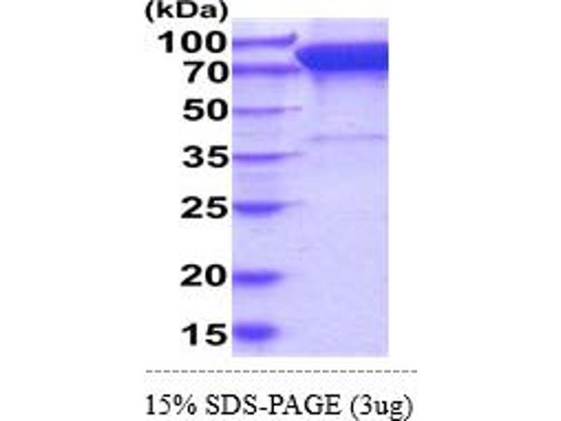 The purity of the protein is greater than 85 % as determined by SDS-PAGE and Coomassie blue staining.