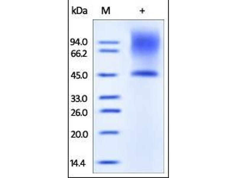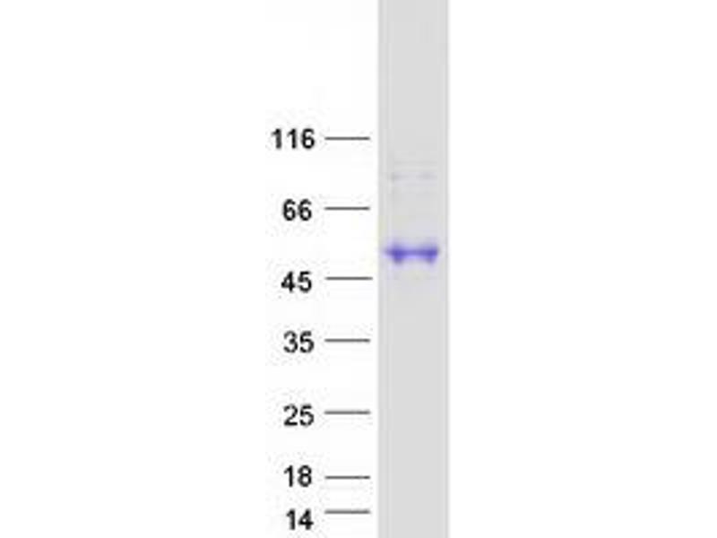 The purity of the protein is greater than 85 % as determined by SDS-PAGE and Coomassie blue staining.