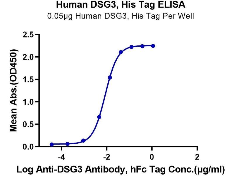Desmosomes are cell-cell junctions between epithelial, myocardial, and certain other cell types. Desmoglein 3 is a calcium-binding transmembrane glycoprotein component of desmosomes in vertebrate epithelial cells. Currently, three desmoglein subfamily members have been identified and all are members of the cadherin cell adhesion molecule superfamily. These desmoglein gene family members are located in a cluster on chromosome 18. This protein has been identified as the autoantigen of the autoimmune skin blistering disease pemphigus vulgaris. [provided by RefSeq, Jul 2008].
