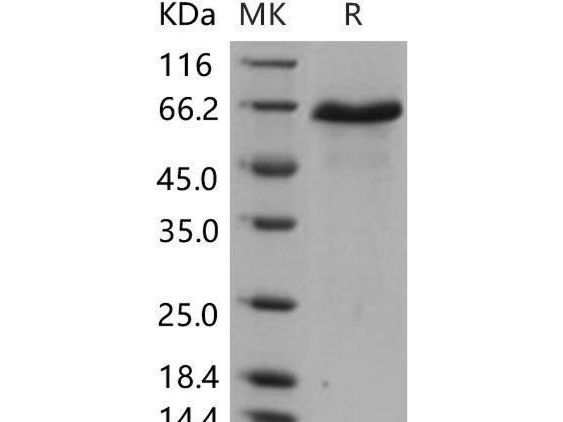 The purity of the protein is greater than 85 % as determined by SDS-PAGE and Coomassie blue staining.