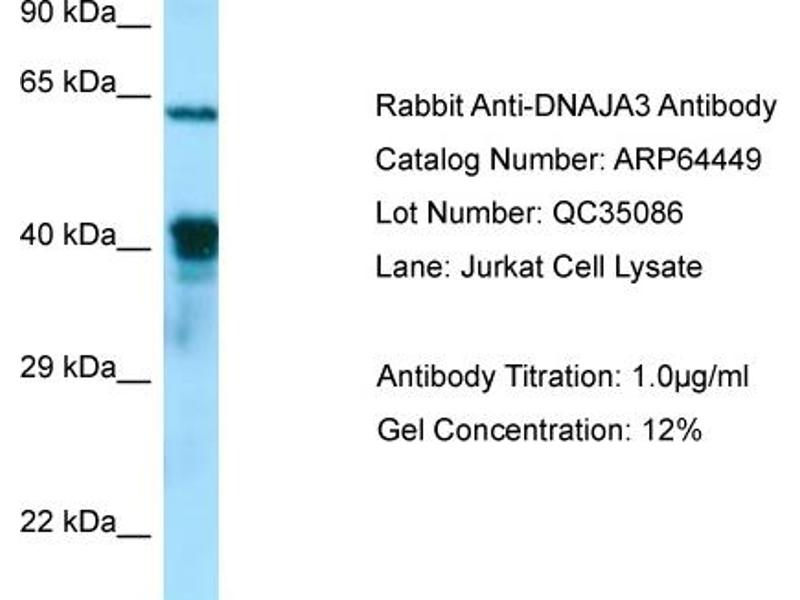 DNAJA3 Reactivité: Humain WB Hôte: Lapin Polyclonal unconjugated
