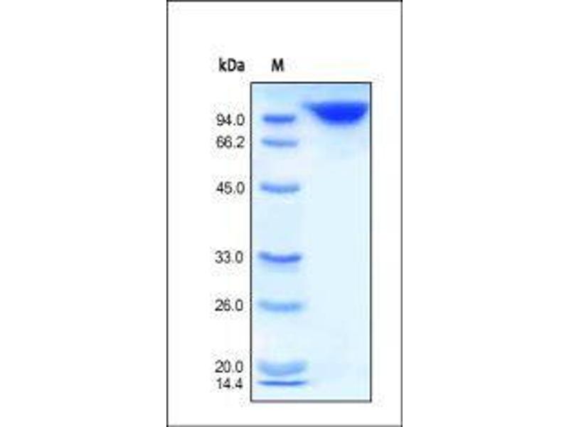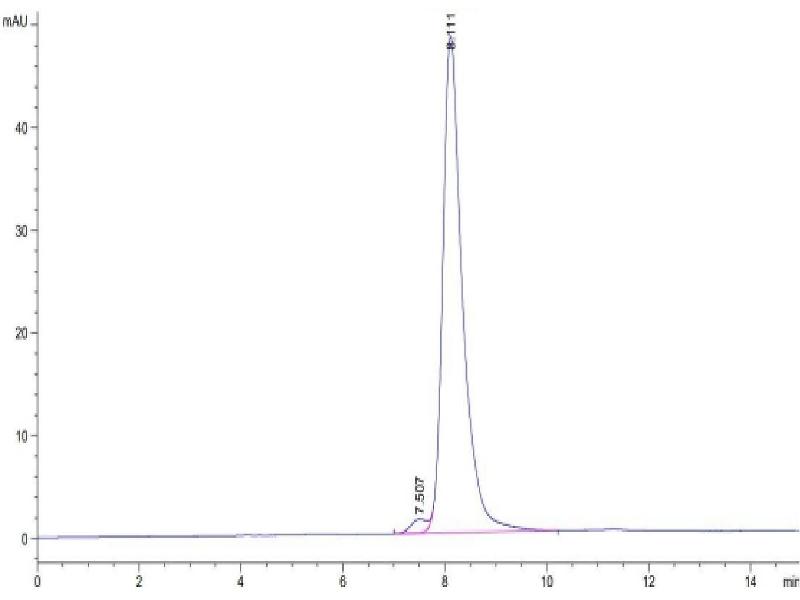 The purity of the protein is greater than 95 % as determined by SDS-PAGE and Coomassie blue staining.