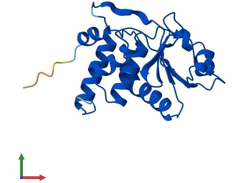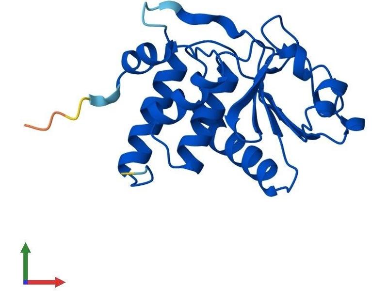 The protein encoded by this gene is a member of the dual specificity protein phosphatase subfamily. These phosphatases inactivate their target kinases by dephosphorylating both the phosphoserine/threonine and phosphotyrosine residues. They negatively regulate members of the mitogen-activated protein (MAP) kinase superfamily (MAPK/ERK, SAPK/JNK, p38), which are associated with cellular proliferation and differentiation. Different members of the family of dual specificity phosphatases show distinct substrate specificities for various MAP kinases, different tissue distribution and subcellular localization, and different modes of inducibility of their expression by extracellular stimuli. This gene maps in a region that contains the BRCA1 locus which confers susceptibility to breast and ovarian cancer. Although DUSP3 is expressed in both breast and ovarian tissues, mutation screening in breast cancer pedigrees and in sporadic tumors was negative, leading to the conclusion that this gene is not BRCA1. [provided by RefSeq, Jul 2008].