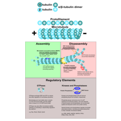 La nature constamment changeante du micro-environnement cellulaire rend nécessaire l'adaptabilité, particulièrement au cours du développement. Les microtubules et d'autres composants cytosquelettiques facilitent cette adaptabilité en raison de leur structure polymère. L'unité fondamentale du microtubule est un dimère de tubuline, composé d'une sous-unité tubuline alpha, et d'une sous-unité tubuline bêta correspondante. Ces dimères polymérisent pour former une structure tubulaire creuse de 24nm de large environ. L'état naturel non modifié de la tubuline est celui d'un flux constant, avec un taux presque égal de polymérisation et de dépolymérisation.