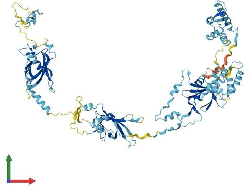 This gene encodes a protein which contains three DM10 domains and three calcium-binding EF-hand motifs. A related protein is encoded by a gene on chromosome 6. It has been suggested that both proteins are involved in the development of epilepsy (PMID: 15258581, 16112844) and that this gene may be associated with fear recognition in individuals with Turner syndrome. [provided by RefSeq, Aug 2011].