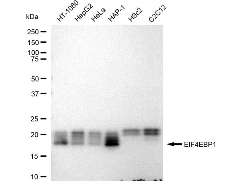 EIF4EBP1 Reactivité: Humain, Souris, Rat WB, IHC, ELISA, IF, ICC Hôte: Lapin Polyclonal unconjugated