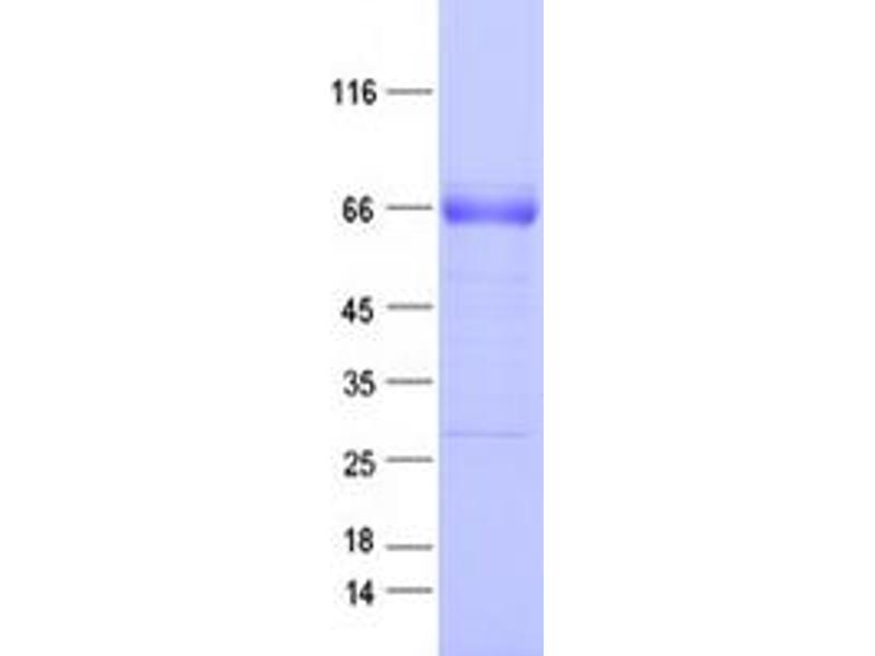 The purity of the protein is greater than 95 % as determined by SDS-PAGE and Coomassie blue staining.