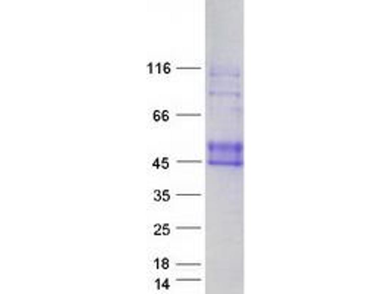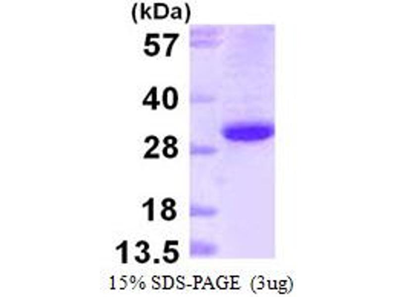 The purity of the protein is greater than 85 % as determined by SDS-PAGE and Coomassie blue staining.