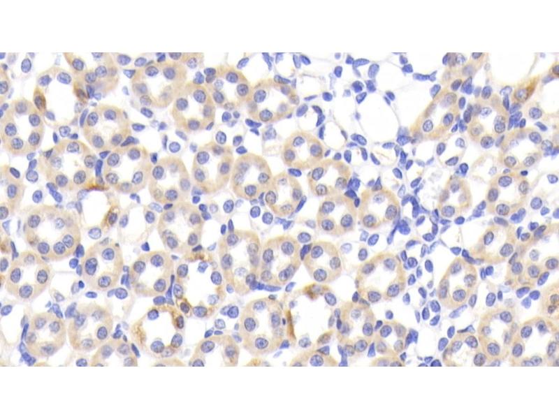 FABP1 Reactivité: Humain, Souris, Boeuf (Vache), Chien, Cobaye, Cheval, Singe, Roussette (Chauve-souris) WB, IHC, IHC (p) Hôte: Lapin Polyclonal unconjugated