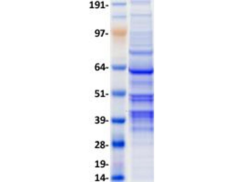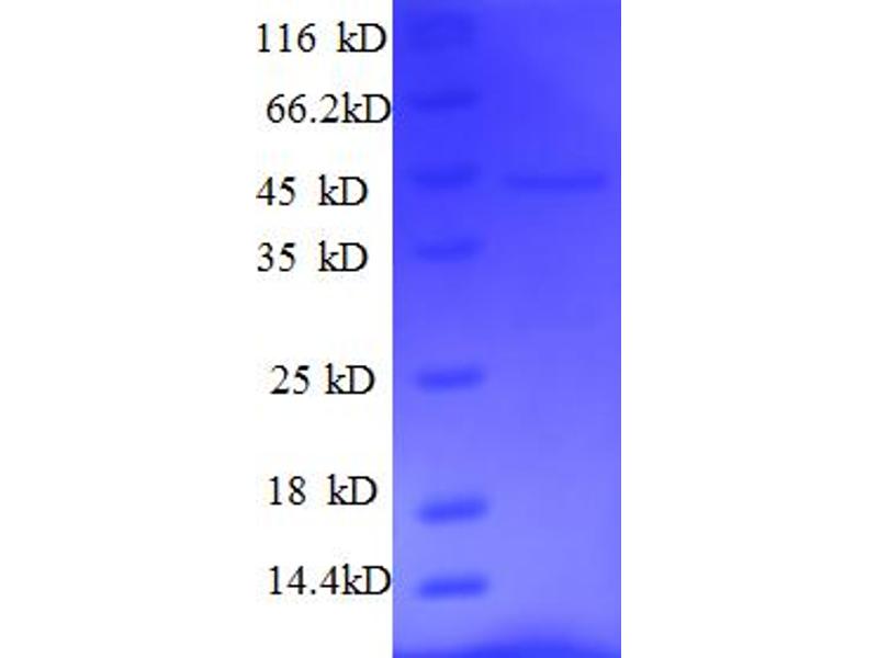 The purity of the protein is greater than 90 % as determined by SDS-PAGE and Coomassie blue staining.