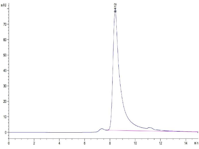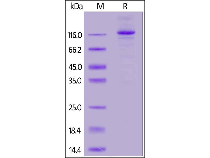 The purity of the protein is greater than 95 % as determined by SDS-PAGE and Coomassie blue staining.