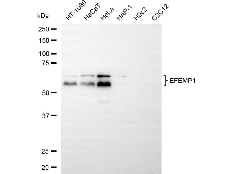 : "Fibulin-3 promotes muscle-invasive bladder cancer." dans: Oncogene, Vol. 36, Issue 37, pp. 5243-5251, (2017) (PubMed).: "EFEMP1 promotes the migration and invasion of osteosarcoma via MMP-2 with induction by AEG-1 via NF-κB signaling pathway." dans: Oncotarget, Vol. 6, Issue 16, pp. 14191-208, (2016) (PubMed).