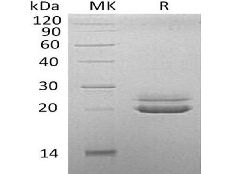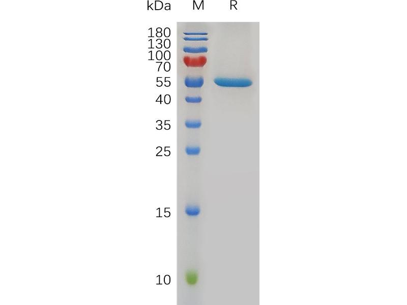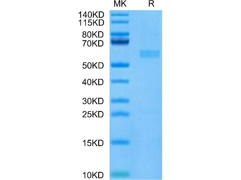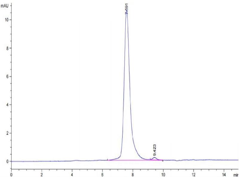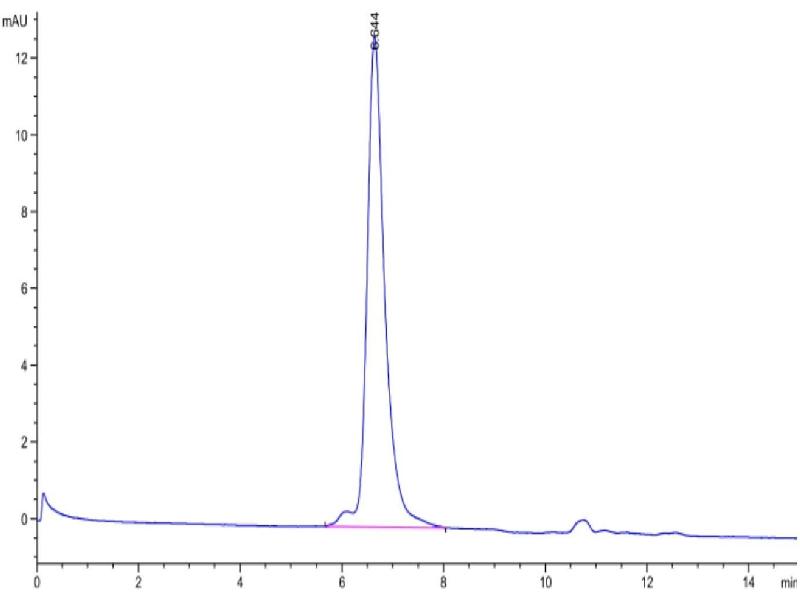 The purity of the protein is greater than 95 % as determined by SDS-PAGE and Coomassie blue staining.