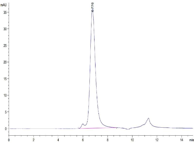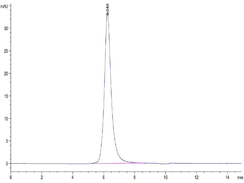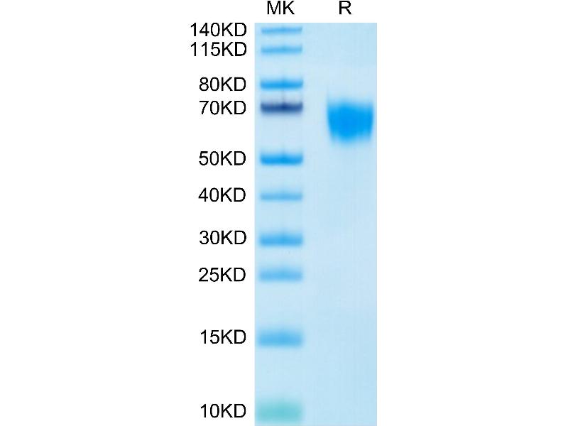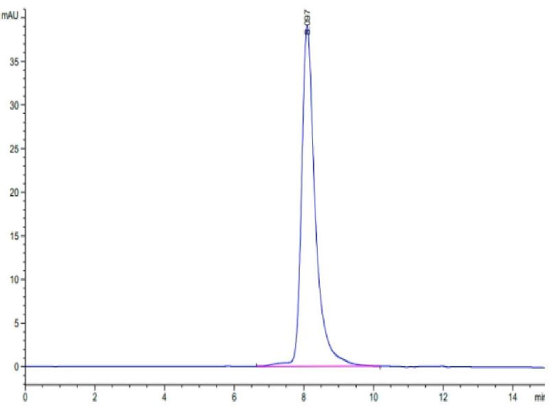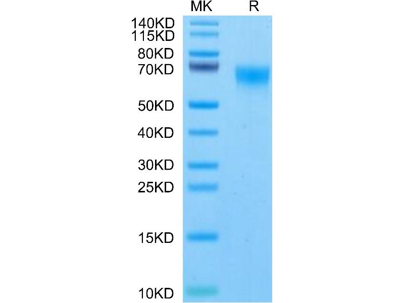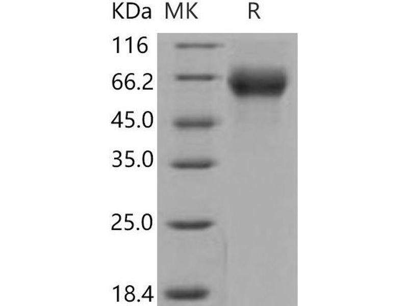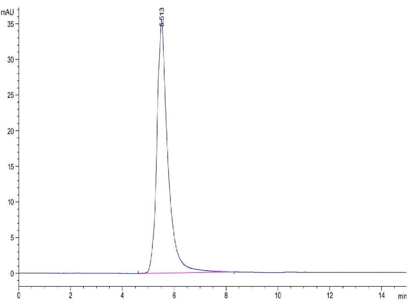 The purity of the protein is greater than 90 % as determined by SDS-PAGE and Coomassie blue staining.