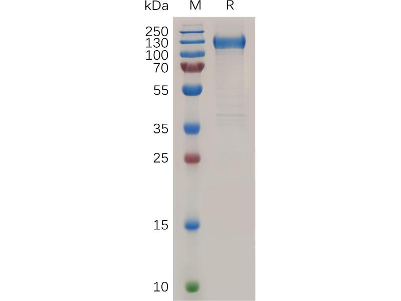 The purity of the protein is greater than 85 % as determined by SDS-PAGE and Coomassie blue staining.