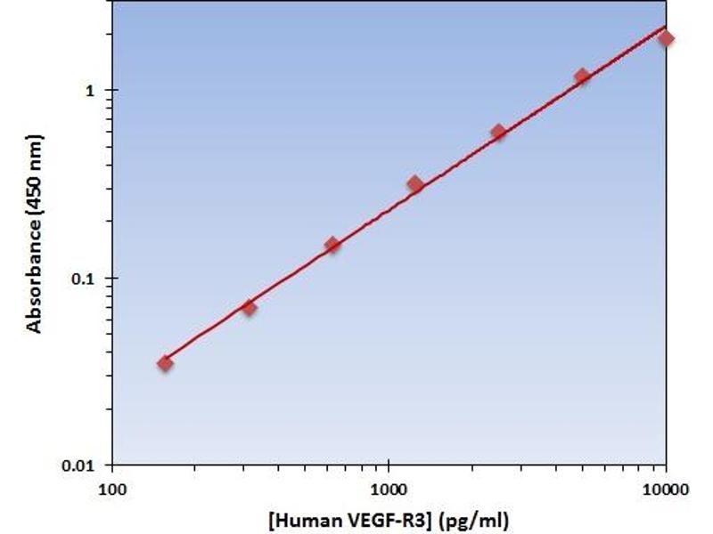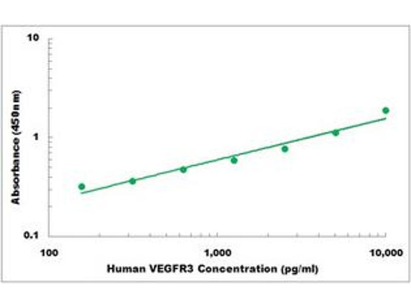 FLT4 Reactivité: Humain Colorimetric Sandwich ELISA 15-3000 pg/mL Cell Culture Supernatant, Plasma, Serum