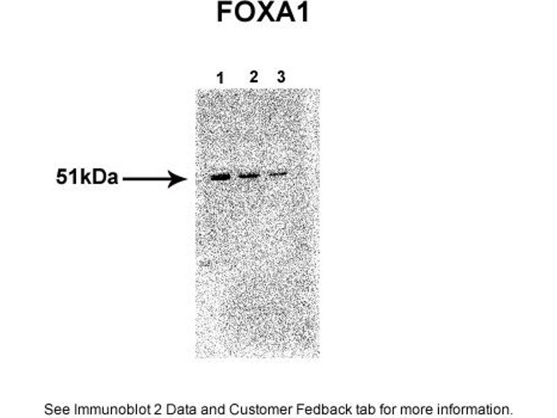 FOXA1 Reactivité: Humain WB, IHC, ICC, IP Hôte: Lapin Polyclonal unconjugated