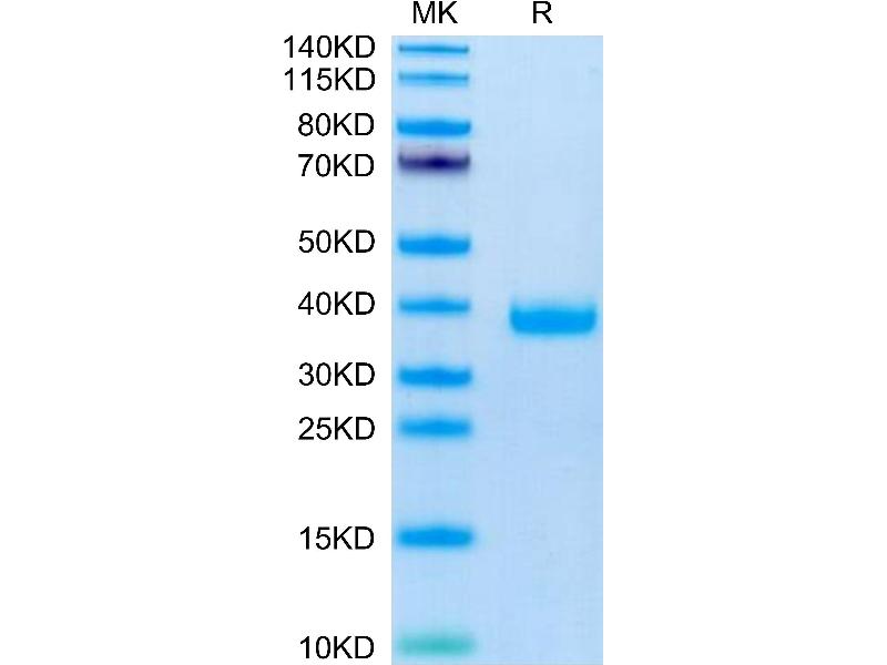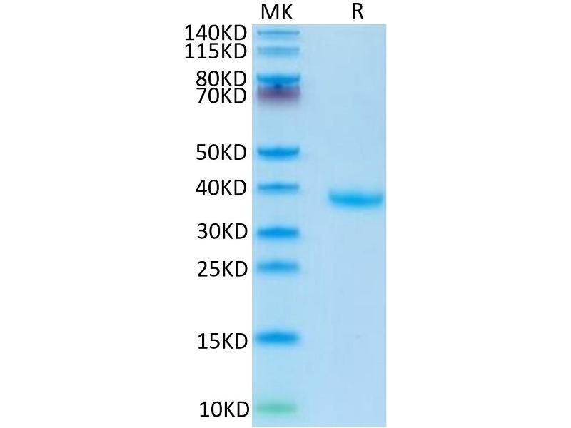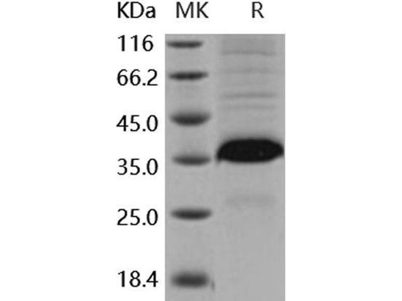 The purity of the protein is greater than 95 % as determined by SDS-PAGE and Coomassie blue staining.