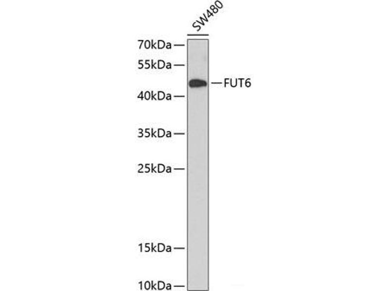 : "α-1,3-Fucosyltransferase-VII siRNA inhibits the expression of SLex and hepatocarcinoma cell proliferation." dans: International journal of molecular medicine, Vol. 42, Issue 5, pp. 2700-2708, (2019) (PubMed).Pseudonymes pour FUT6 Anticorps