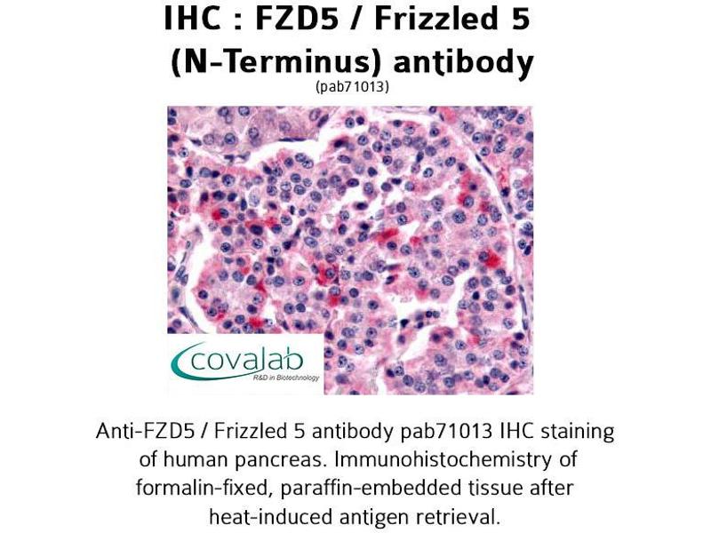 : "Conserved POU-binding site linked to SP1-binding site within FZD5 promoter: Transcriptional mechanisms of FZD5 in undifferentiated human ES cells, fetal liver/spleen, adult colon, pancreatic islet, ..." dans: International journal of oncology, Vol. 30, Issue 3, pp. 751-5, (2007) (PubMed).