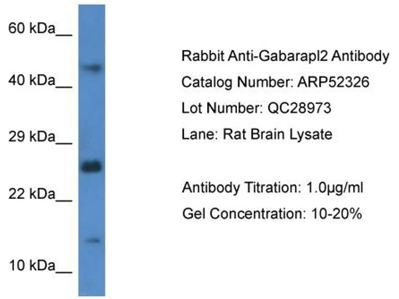 GABARAPL2 Reactivité: Humain, Souris, Rat, Boeuf (Vache), Poisson zèbre (Danio rerio), Chien, Cobaye, Cheval, Lapin, Chévre WB Hôte: Lapin Polyclonal unconjugated