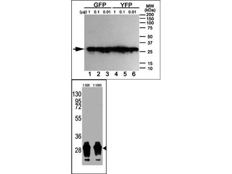 GFP Reactivité: Aequorea victoria IHC Hôte: Lapin Polyclonal unconjugated
