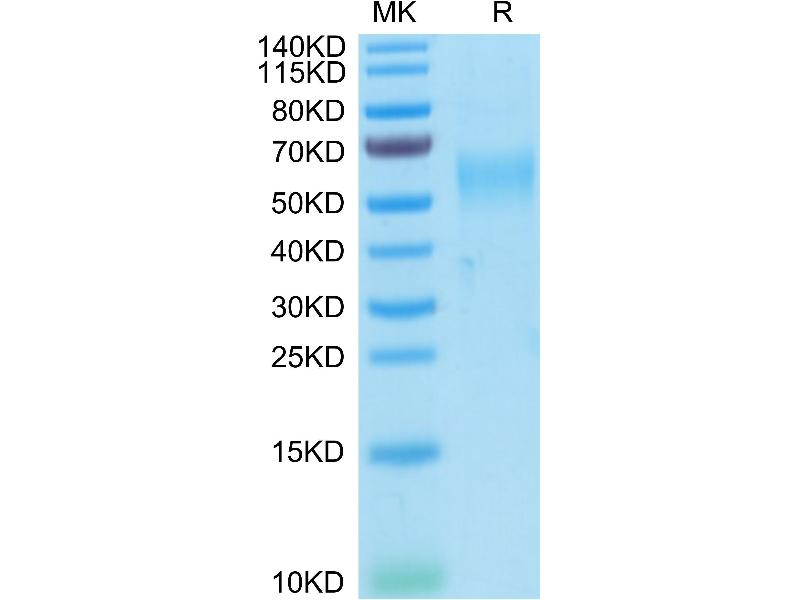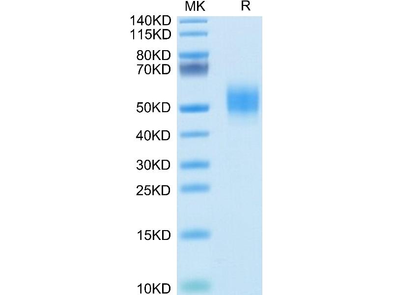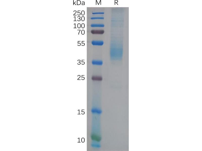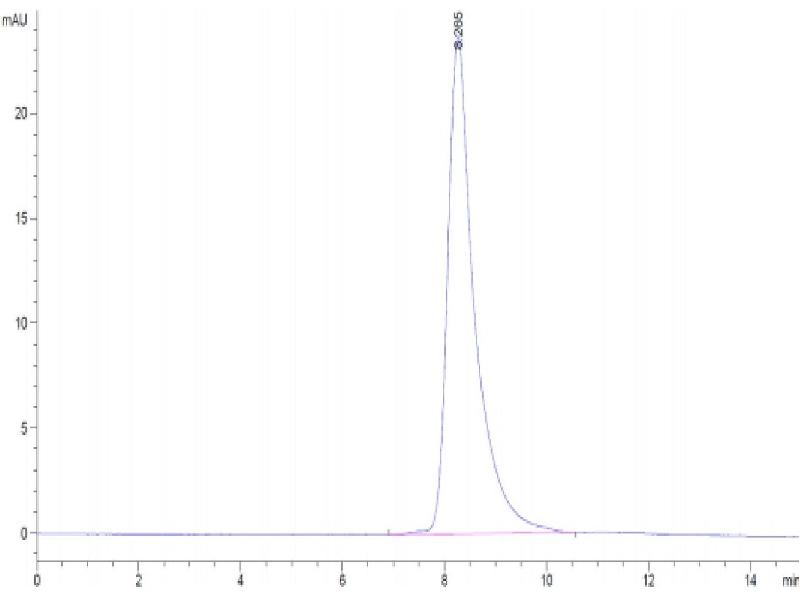 The purity of the protein is greater than 85 % as determined by SDS-PAGE and Coomassie blue staining.