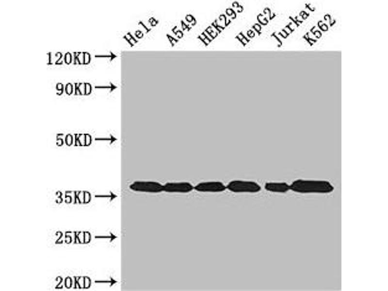 GAPDH Reactivité: Humain, Souris, Rat, Lapin, Chien, Boeuf (Vache), Mouton, Cheval, Chévre, Cobaye WB, IHC Hôte: Lapin Polyclonal unconjugated