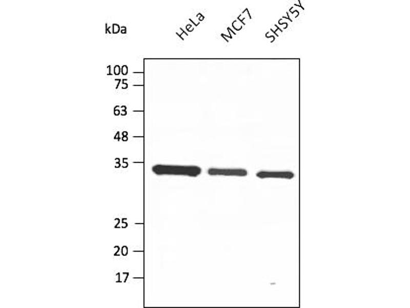 GAPDH Reactivité: Humain, Souris, Rat, Porc, Chien, Poisson zèbre (Danio rerio), Cheval WB Hôte: Lapin Polyclonal unconjugated