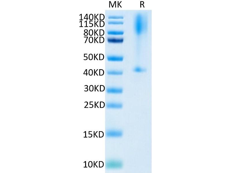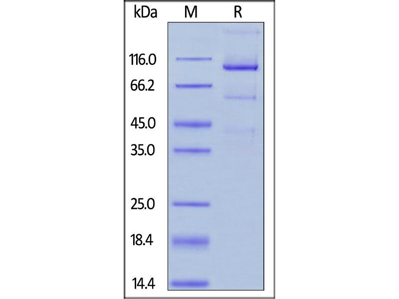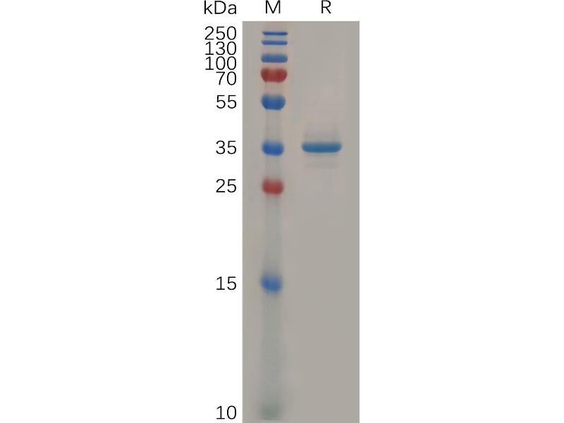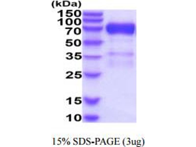 The purity of the protein is greater than 95 % as determined by SDS-PAGE and Coomassie blue staining.