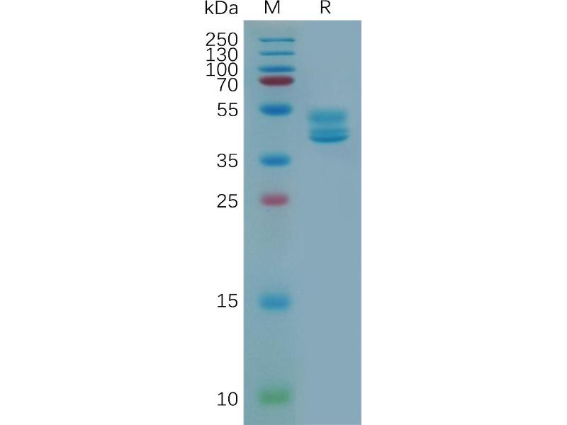 The purity of the protein is greater than 95 % as determined by SDS-PAGE and Coomassie blue staining.