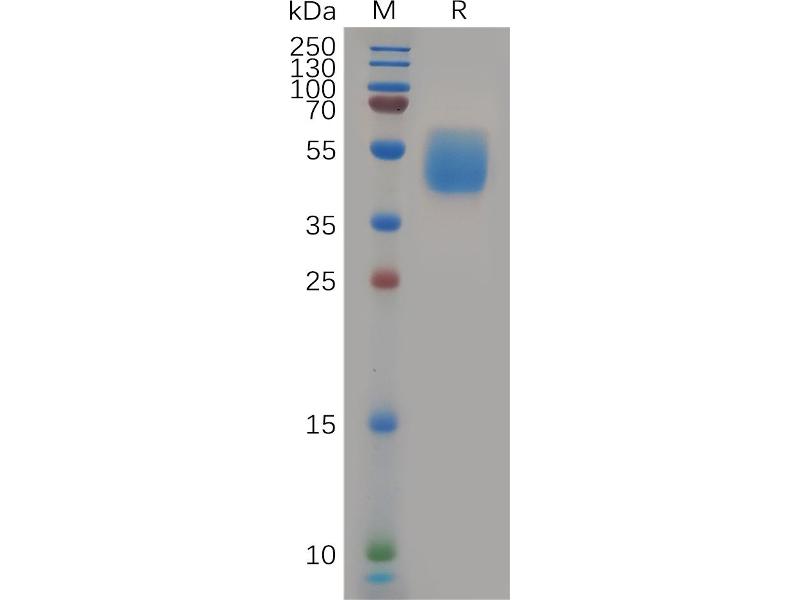 The purity of the protein is greater than 95 % as determined by SDS-PAGE and Coomassie blue staining.